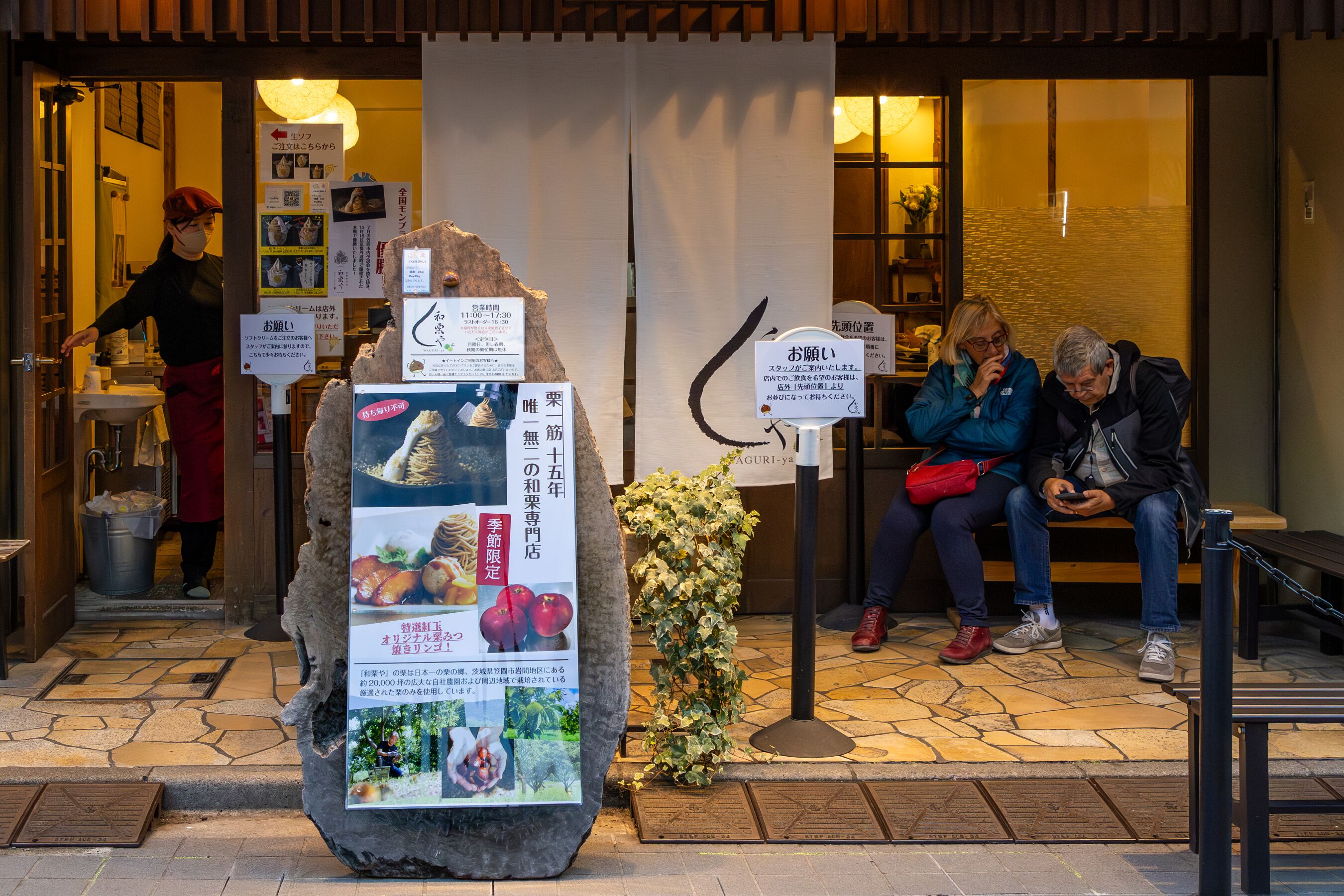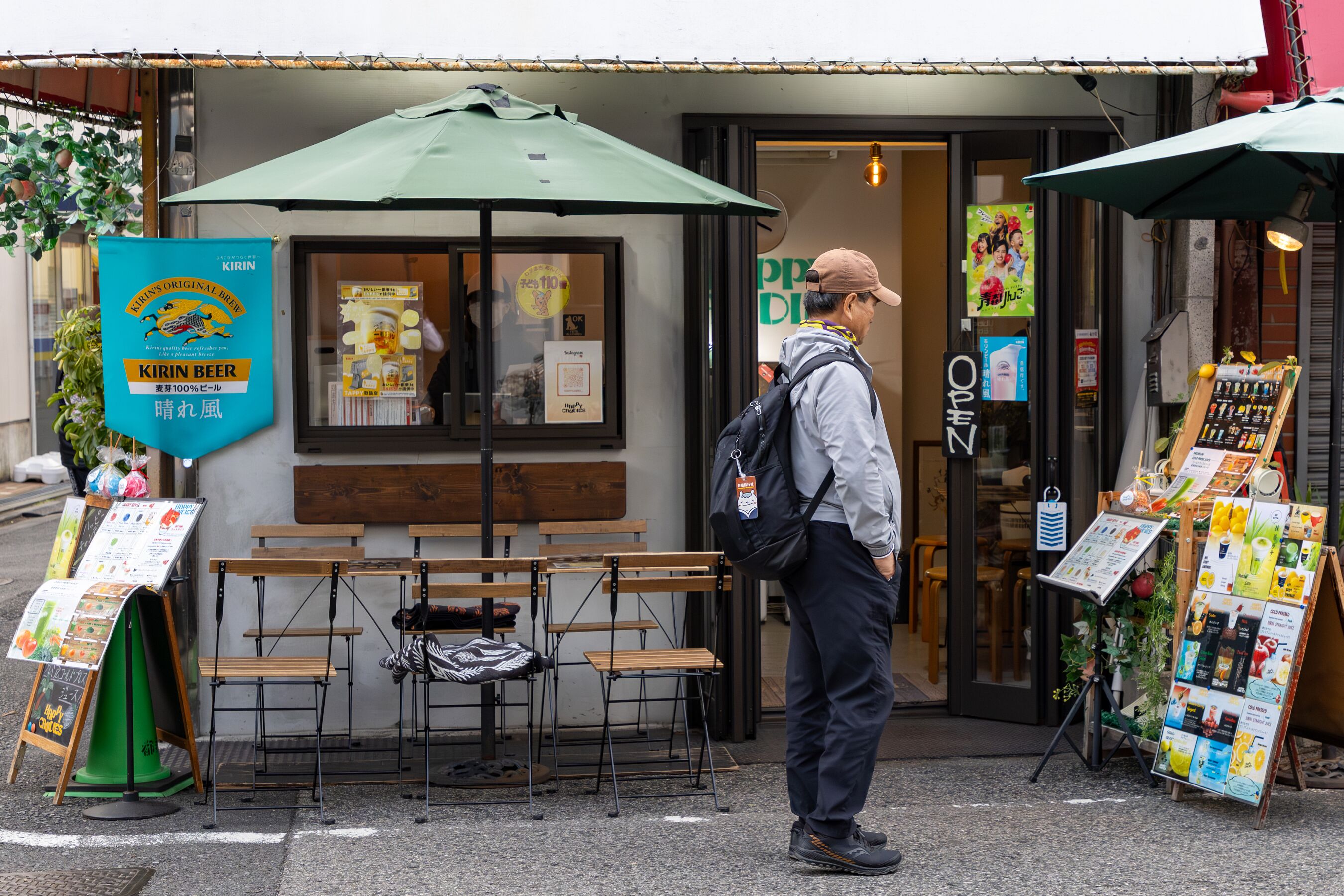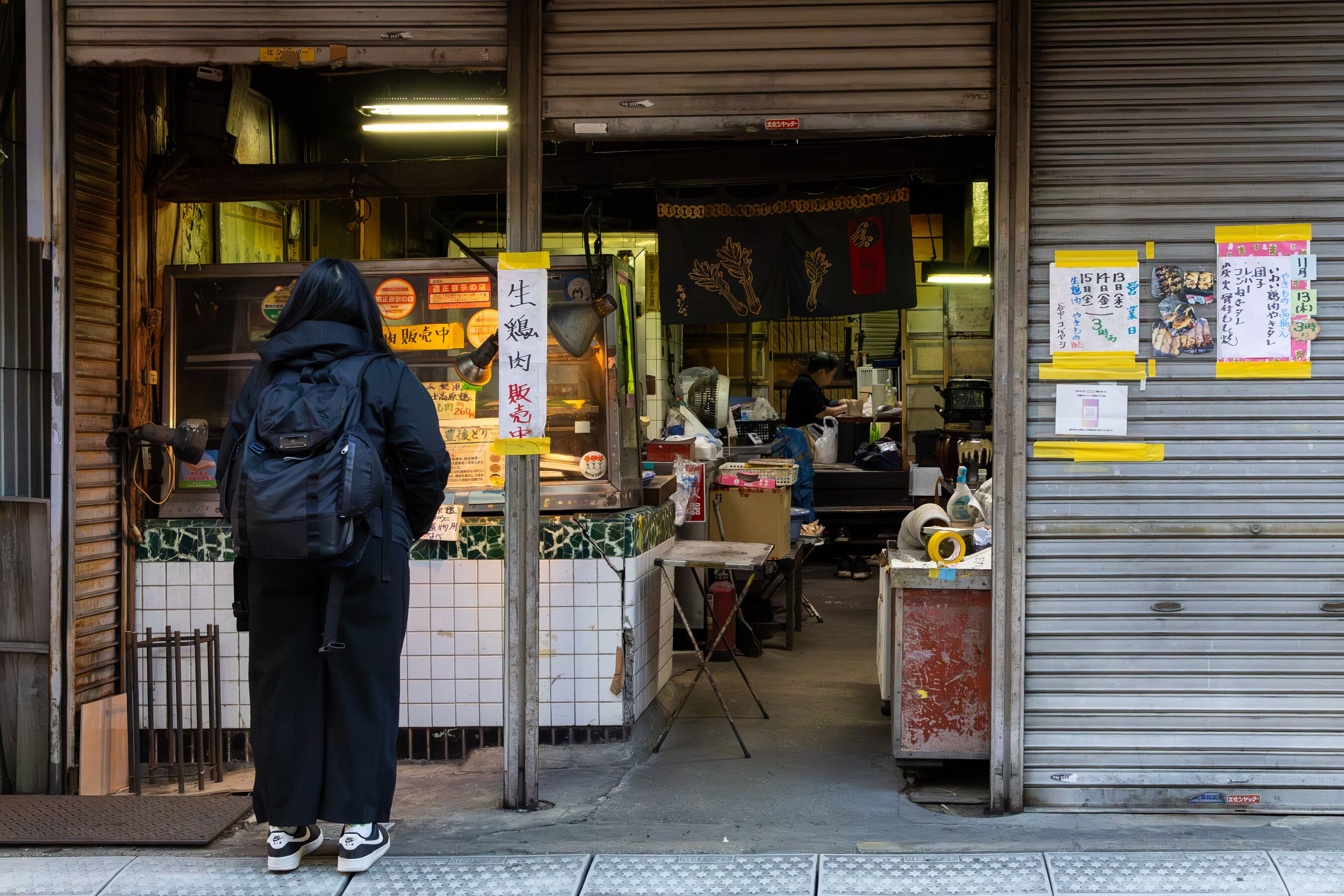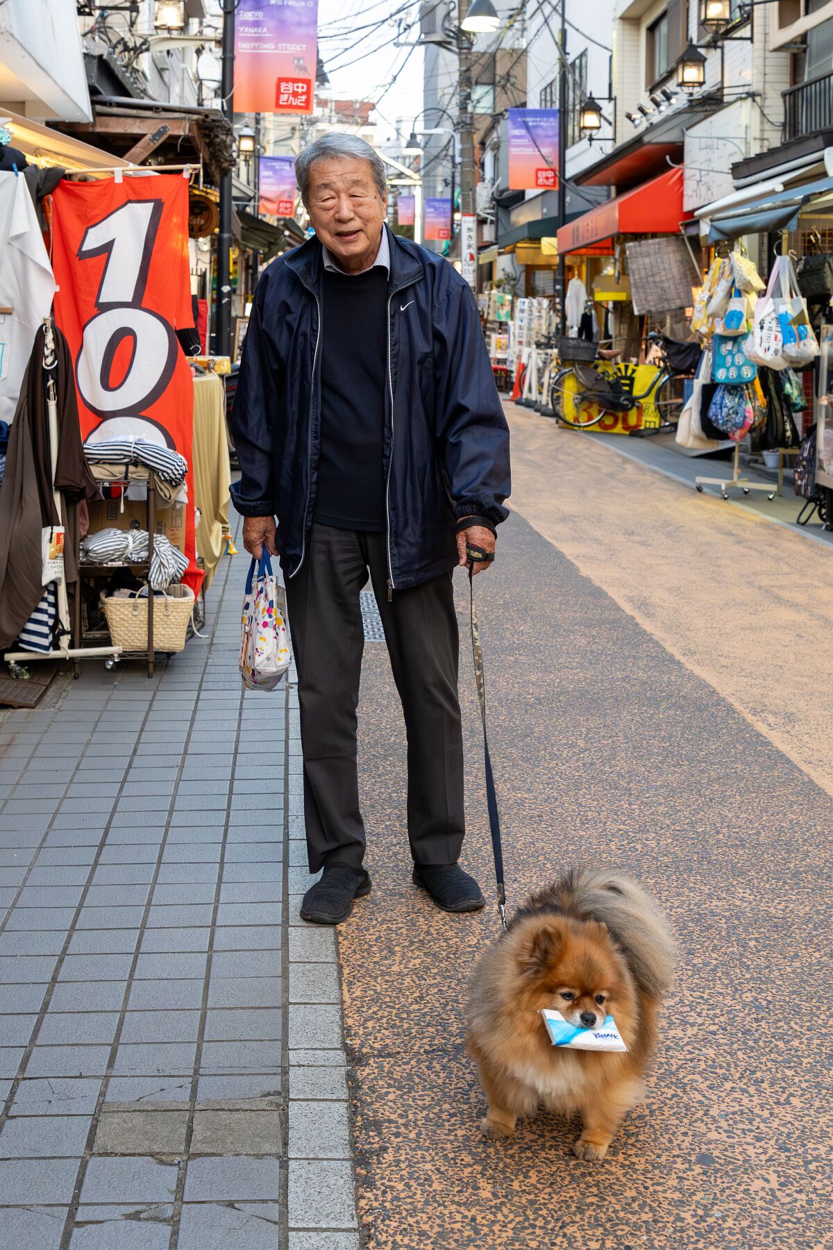 ・また、散歩する犬と飼い主の姿や、メニューボードに見入る来街者の何気ない仕草は、この商店街が持つ人間味あふれる魅力を物語っています。